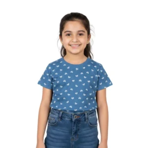 Girls Printed Cotton T-Shirt – Soft Casual Summer Graphic Tee for Kids (Black, Blue, Navy)