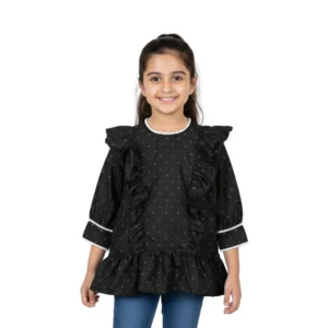 Girls Ruffle Peplum Top – Soft Cotton Casual & Party Wear Tunic for Kids (Navy, Black, Maroon)