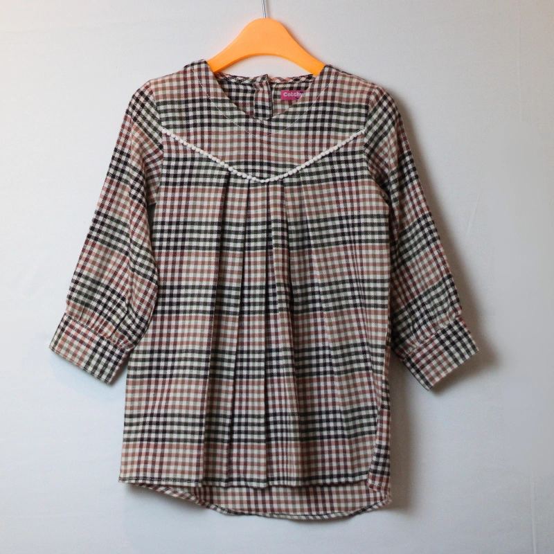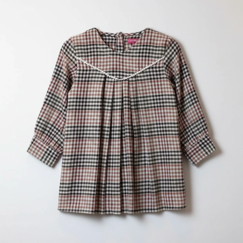 Girls’ Multi-Color Check Tunic with Pintucks and Lace Trim | Autumn Ready-to-Wear
